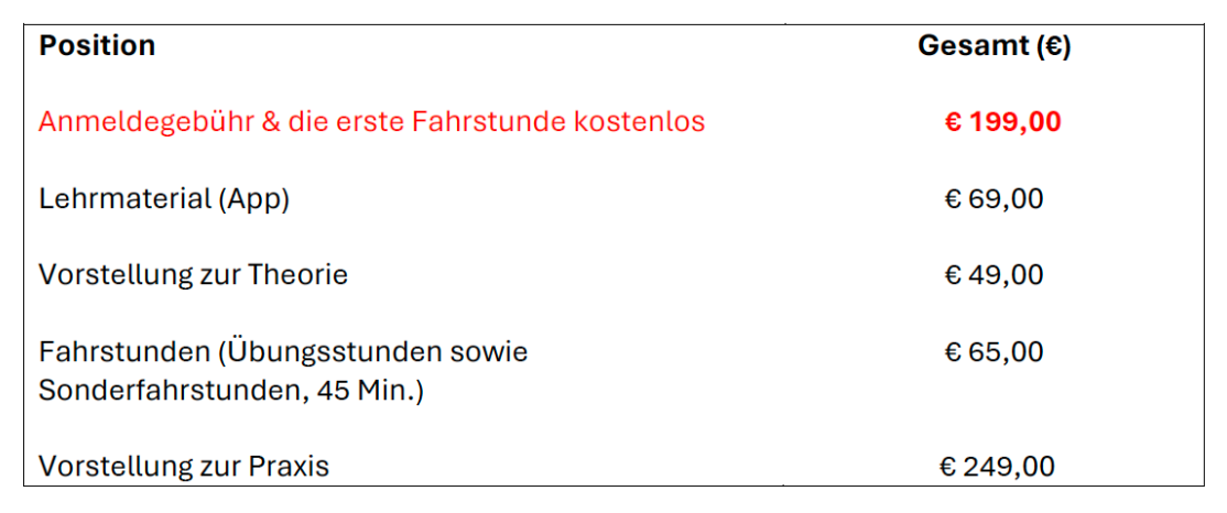Kostenübersicht - Führerscheinklasse B/B197